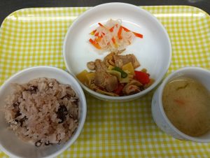 給食:小豆ご飯・筑前煮・紅白なます・白みそ汁(かぶ・人参・里芋)