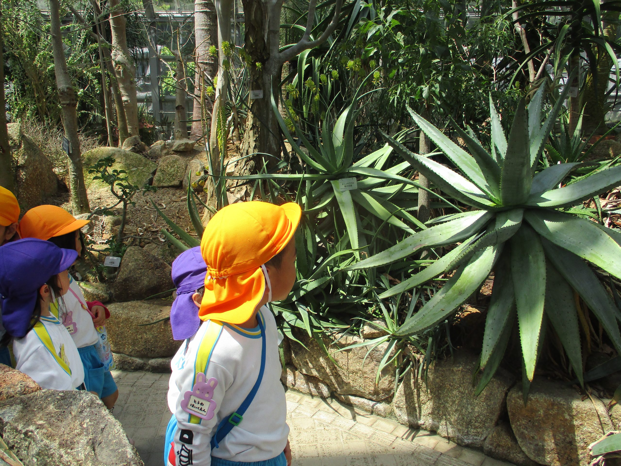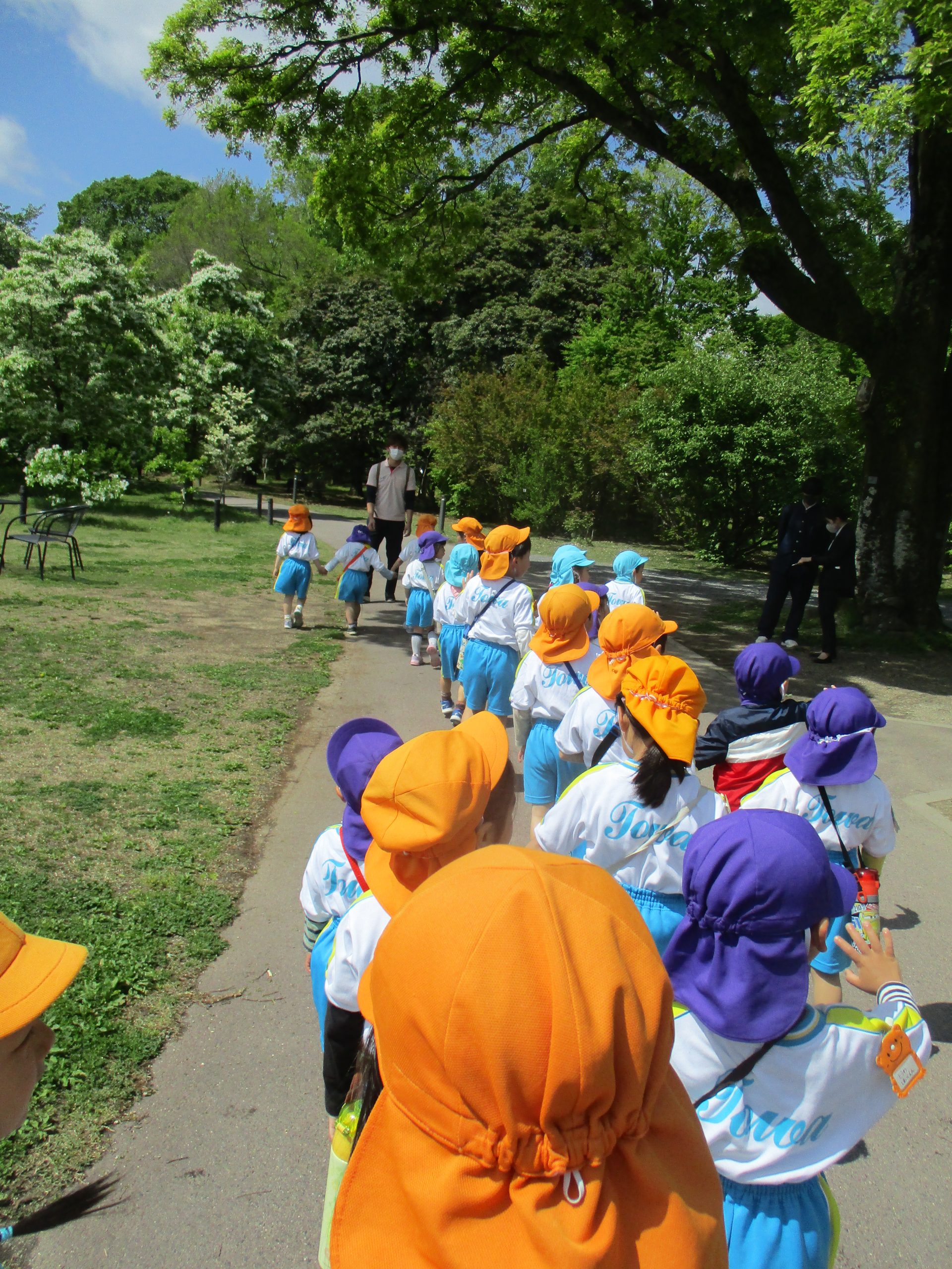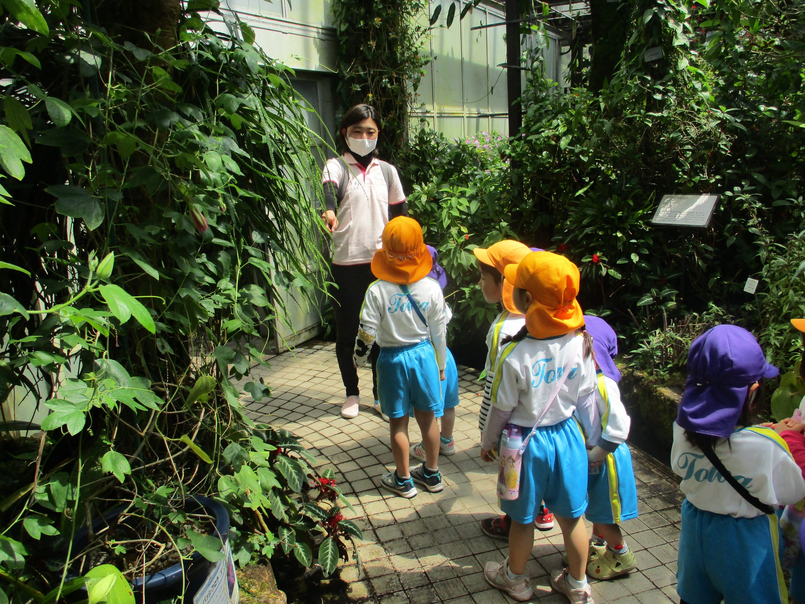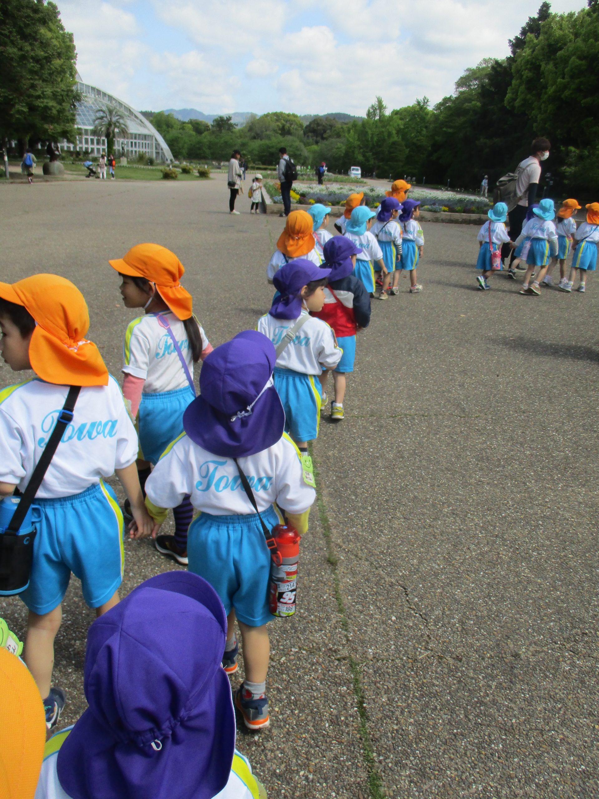 4月27日(木)、バスに乗って京都府立植物園まで行きました!春の自然に触れたり、普段見ることのない草花を見て、子どもたちは、驚きや発見の連続!!といった様子でした。この一年、沢山の経験を子ども達と一緒に楽しみたいと思っています。