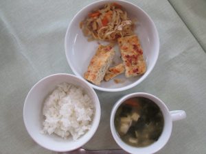 給食:ご飯・松風焼・切り干し大根煮・みそ汁(ほうれん草 えのき しめじ にんじん 豆腐)