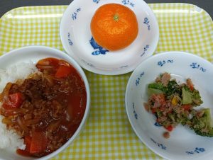 給食:ハヤシライス ブロッコリーサラダ みかん