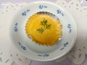 おやつ:にんじん蒸しパン(子どもたちが育てて収穫した人参入り・かざりの人参の葉も)・牛乳