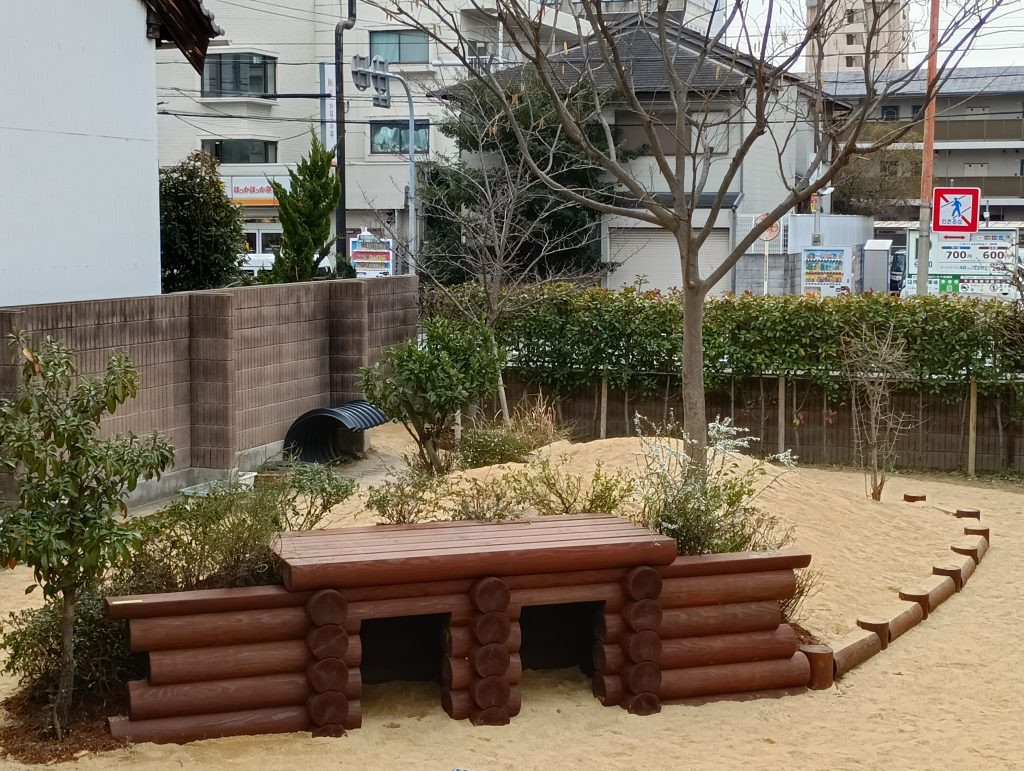京の木整備事業とは、商業施設や福祉施設など多くの府民等が集う住宅以外の民間において府民産木材を利用した木製品などの導入を支援し、府民が木とふれあい身近に感じる環境を拡大し、森林資源の防止などに役立てるものです。築山の形状が整い、トンネル部分や土止めに京都府産の木材がふんだんに使用されています。今回の設置により、更に安全性が高まり、子どもたち保護者の皆様にとってよりよい環境になることと思います。