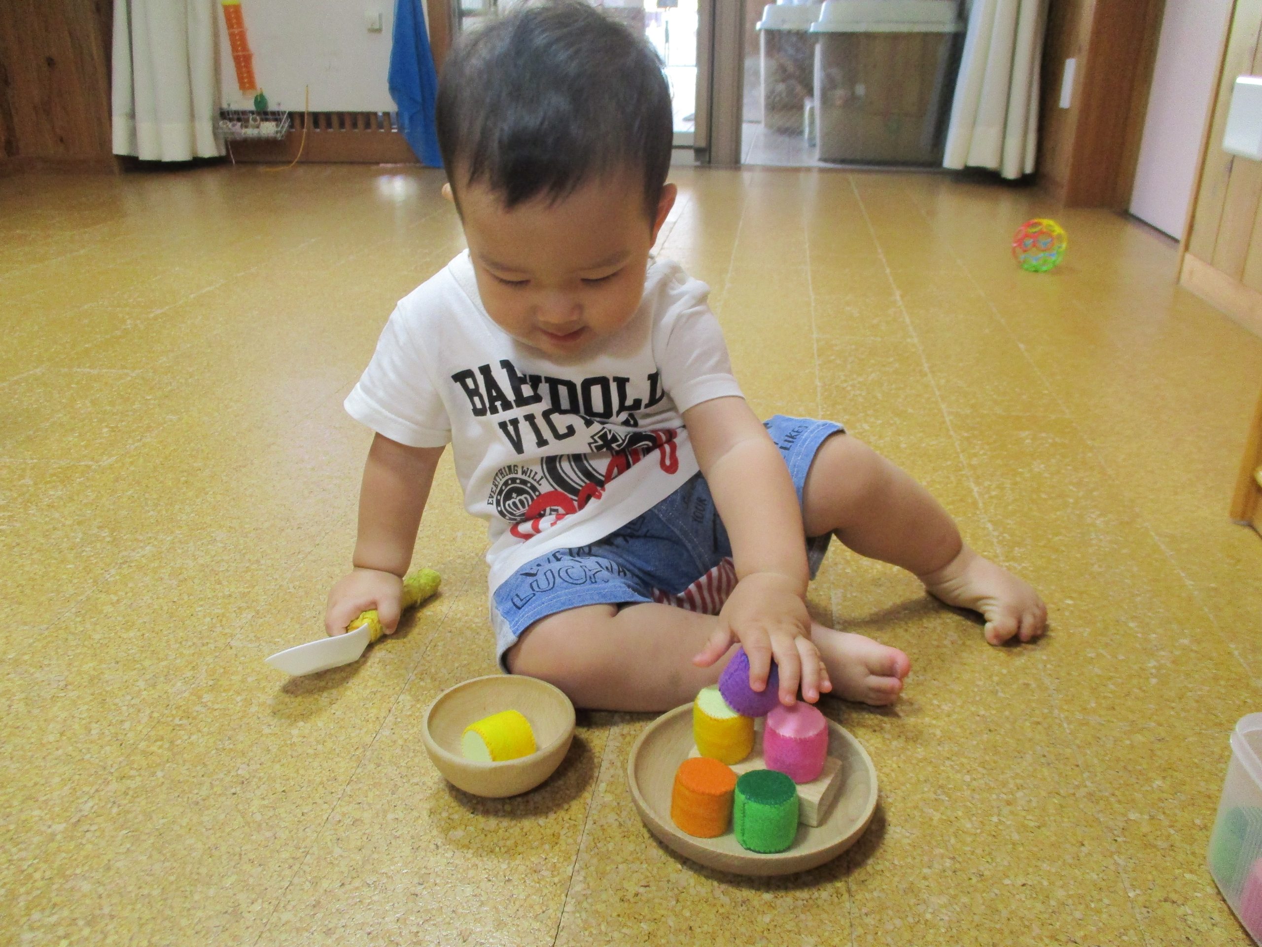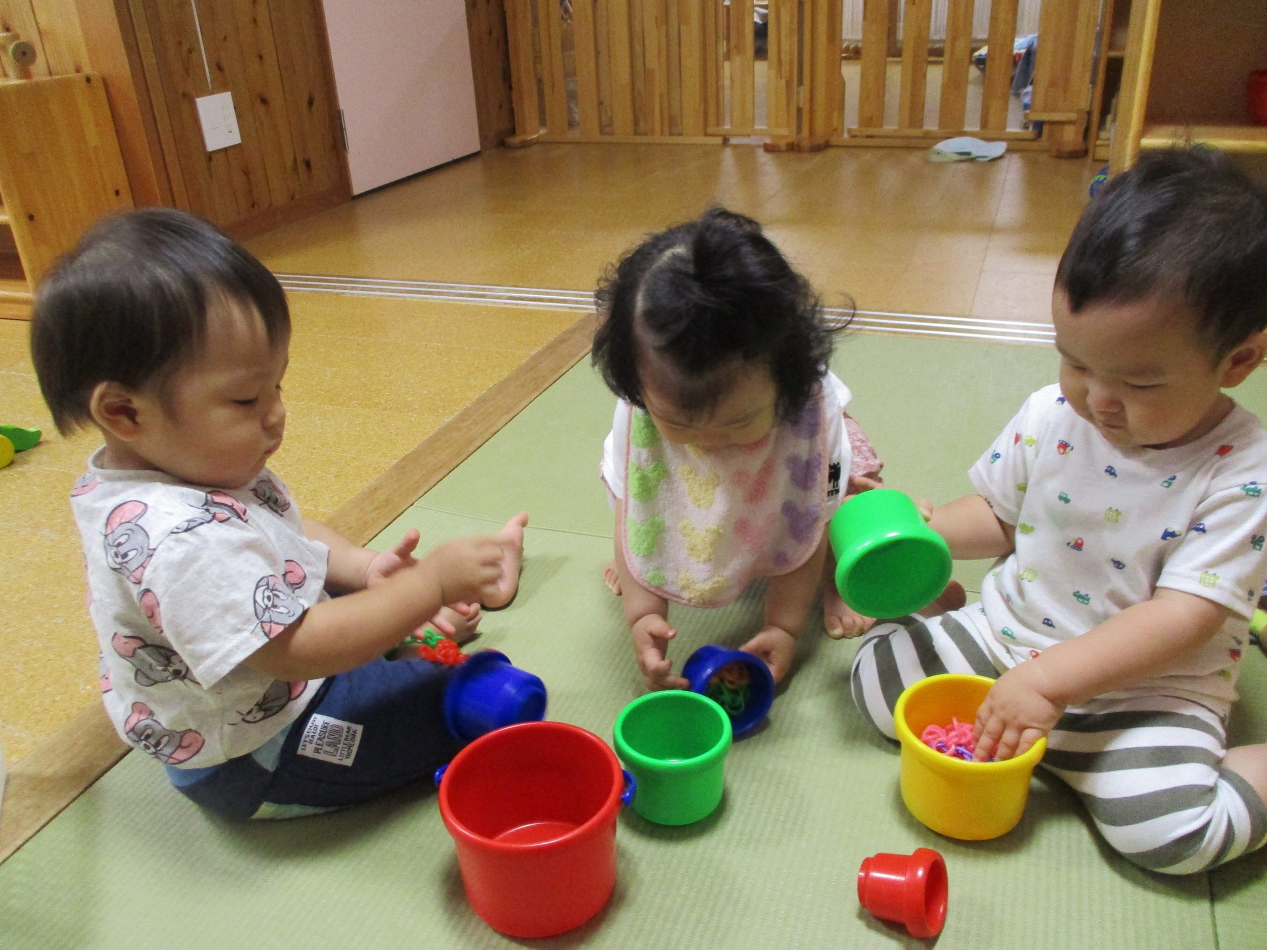 最近のたんぽぽ組(0歳児クラス)の遊びや玩具を紹介します。