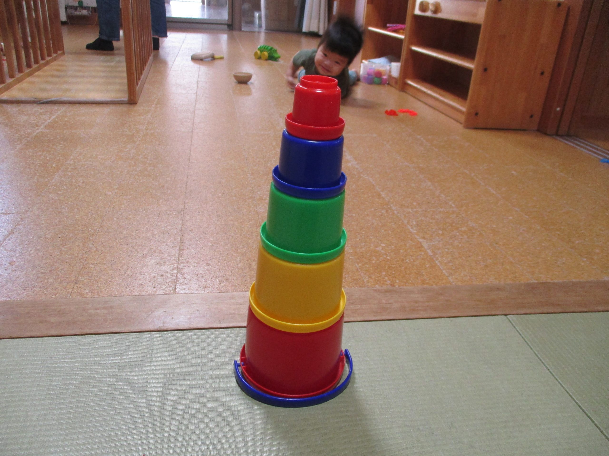 - タワーにもなり、これを倒すのも子どもたちは好きです。